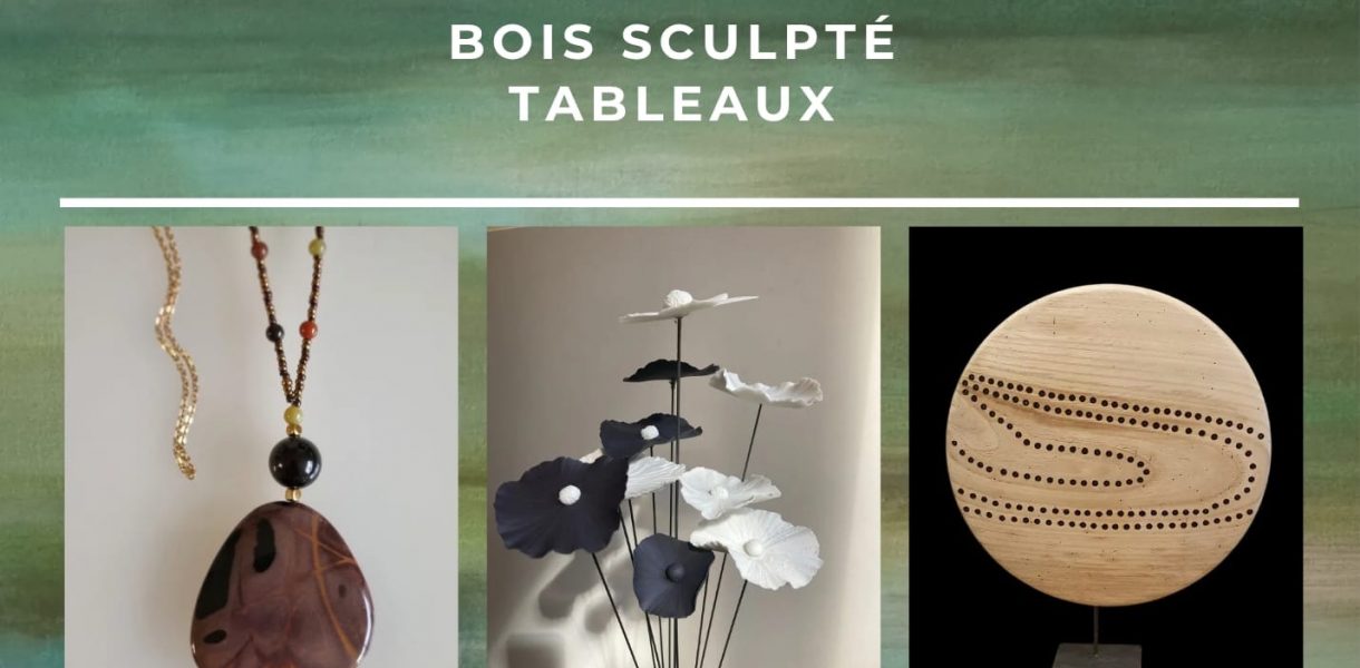 Vous pourrez aussi découvrir les tableaux et bijoux de Frédérique Letinaud et les magnifiques créations de bois sculpté de Frédéric Bignon.
