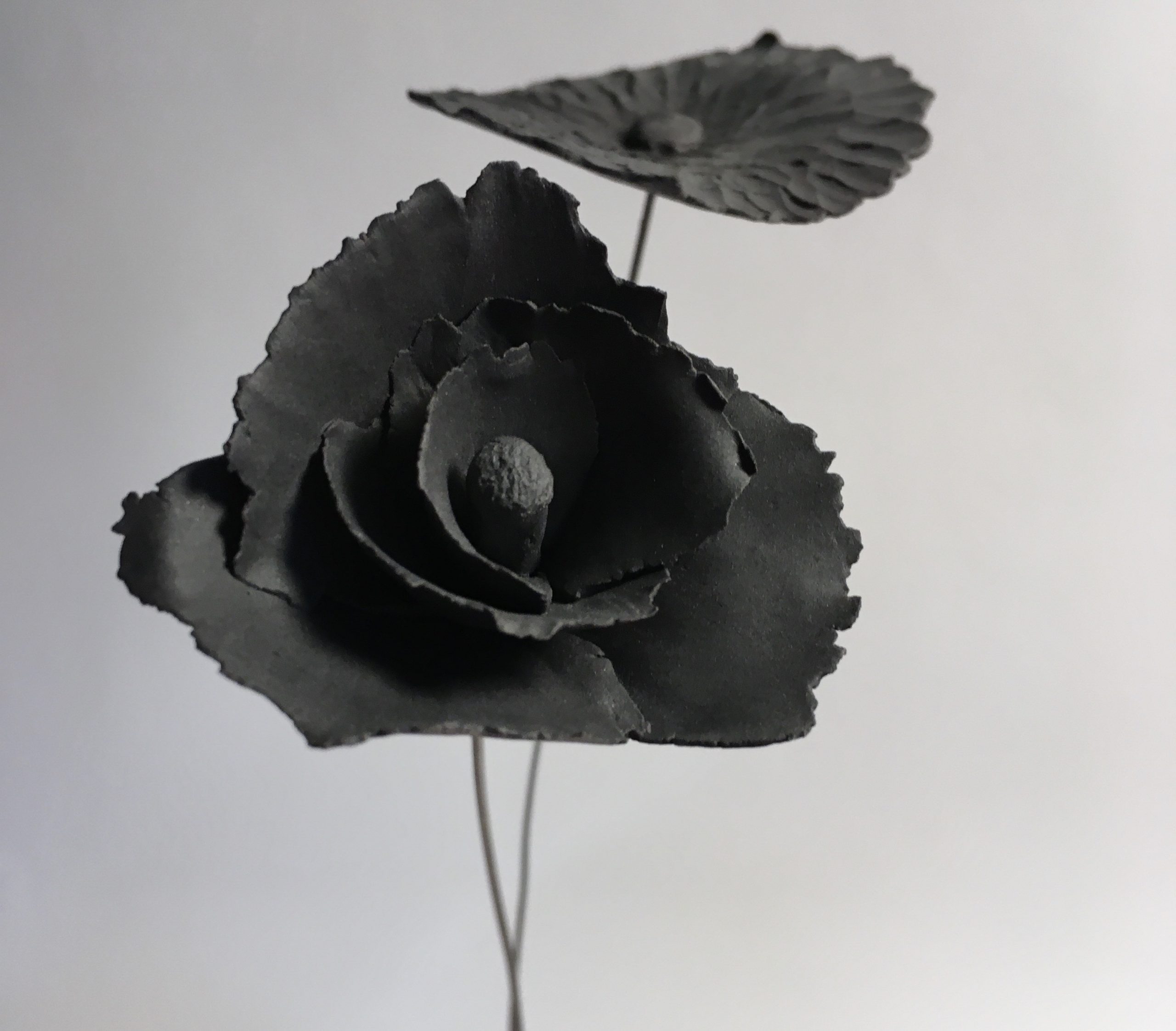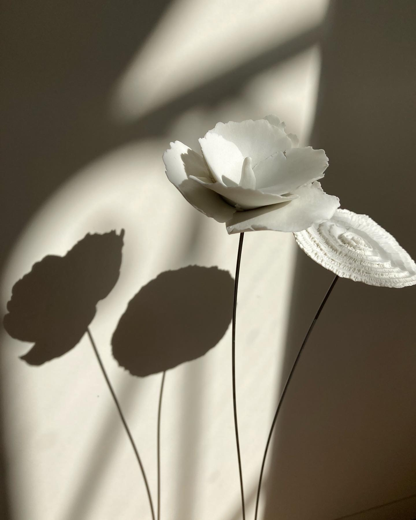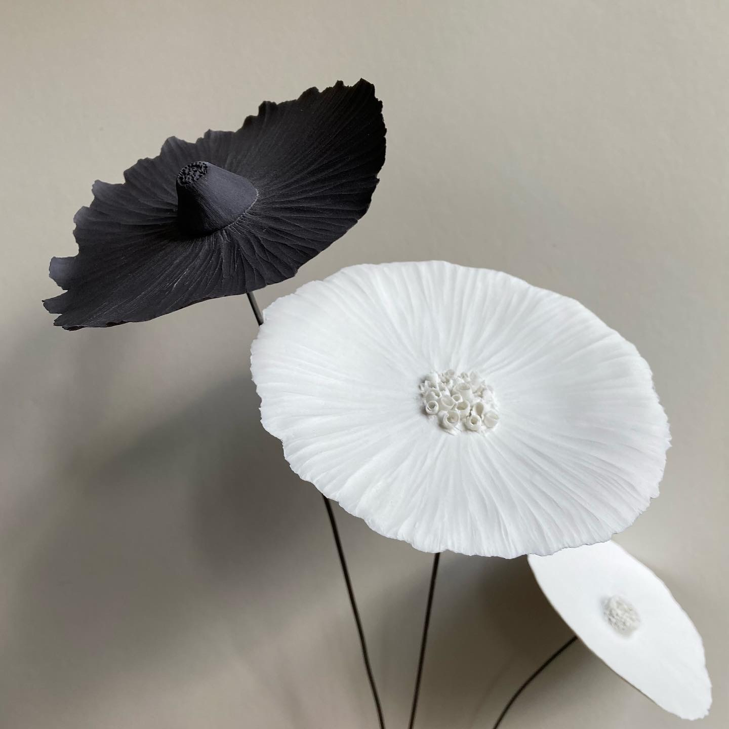 Mes fleurs en porcelaine éclosent toutes d’une boule de porcelaine blanche ou noire travaillée délicatement à la main. De tailles variées, en porcelaine noire ou blanche, de forme libre, gravées, plissées, découpées, ondulées, toutes mes fleurs en porcelaine sont des pièces uniques poétiques et design.. Elles sont montées sur une tige d’acier vernie., Vous pouvez composer un bouquet intemporel de fleurs en porcelaine ou juste mettre une fleur dans un soliflore. Une décoration florale unique, délicate, épurée, sobre et originale.