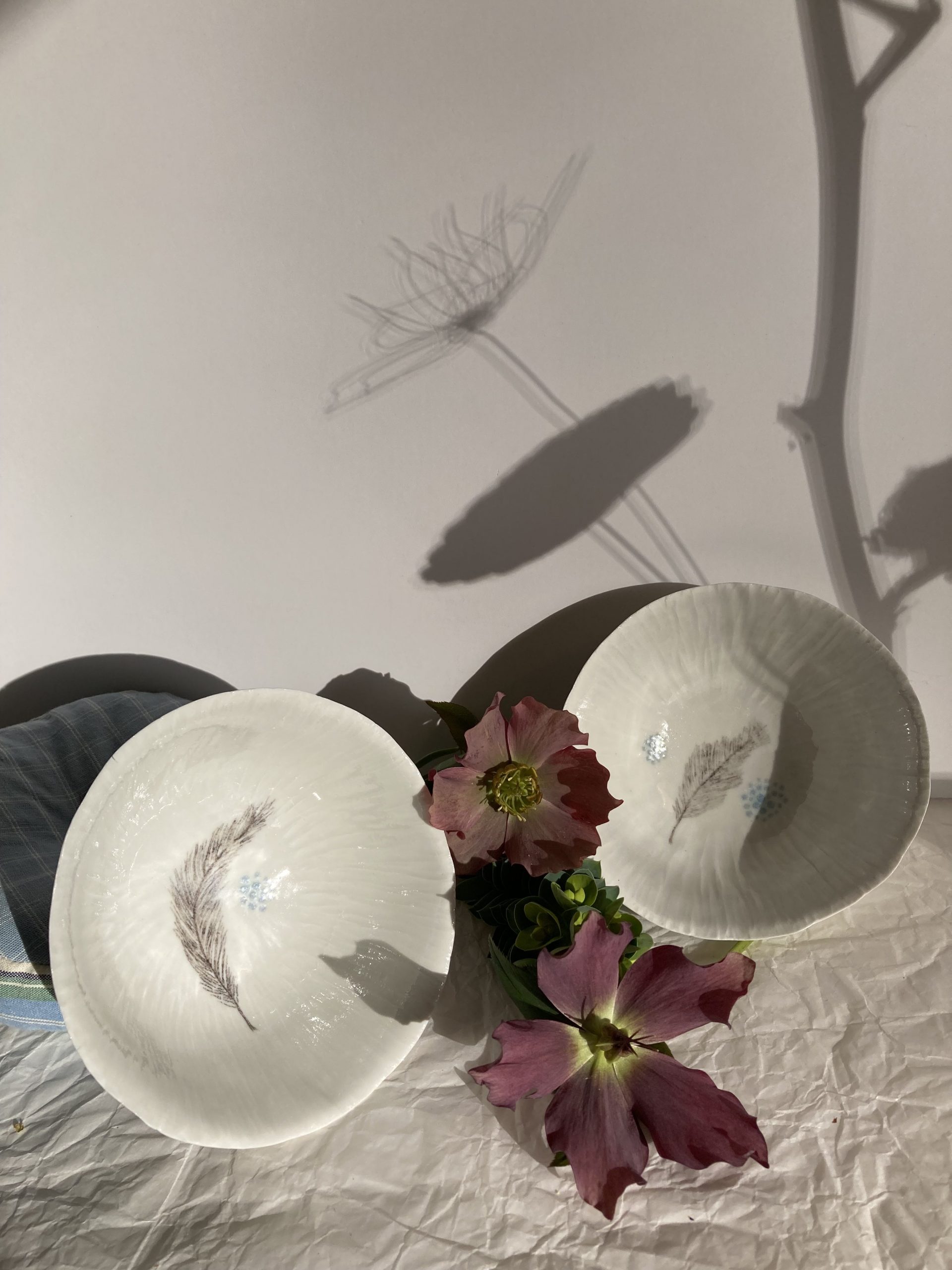 Tous mes plats creux en porcelaine sont des pièces uniques de par leur forme, leur décor. Certains sont faits de porcelaine blanche incrustée de porcelaine noire puis émaillés. D’autres sont travaillés avec différents émaux pour créer un décor paysage. Vous pouvez utiliser ces plats en porcelaine pour servir à table, pour présenter une belle salade ou tout simplement les utiliser pour décorer votre intérieur. Quoi de plus agréable quand tout est mangé que de voir de beaux plats uniques en porcelaine. Ils peuvent aller au lave-vaisselle si vous ne voulez pas les laver à la main. Ils supportent le four et le micro-ondes si nécessaire.