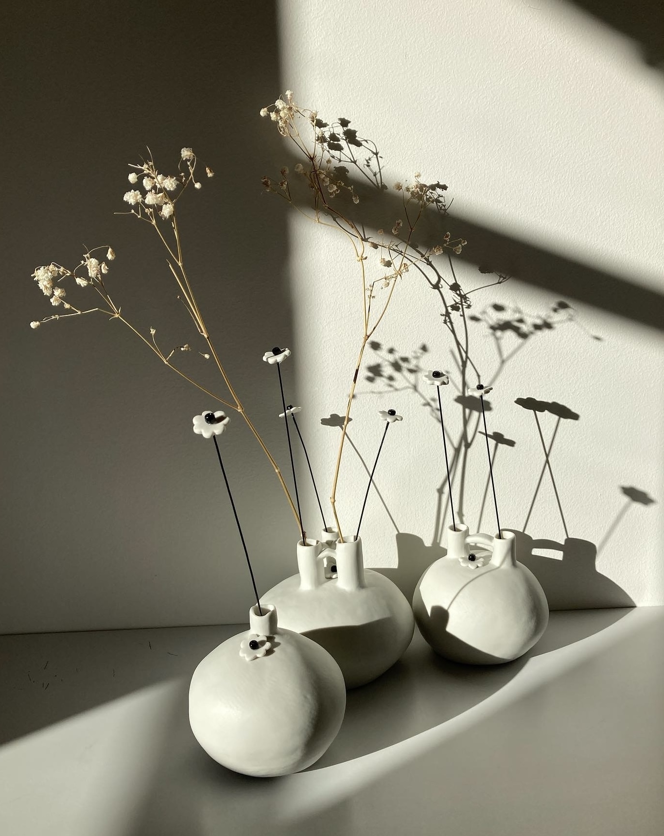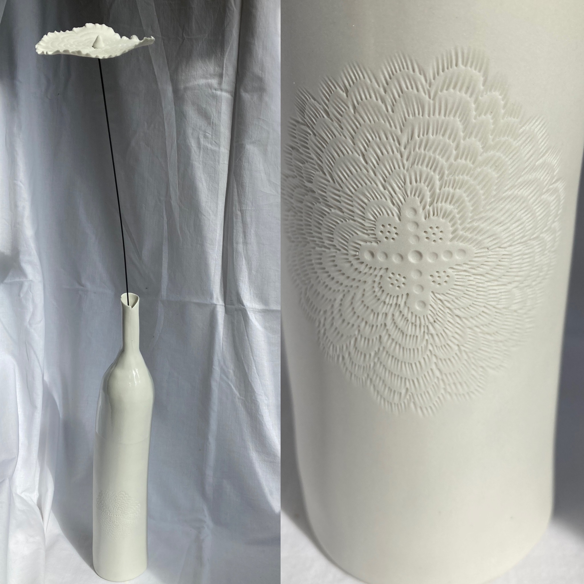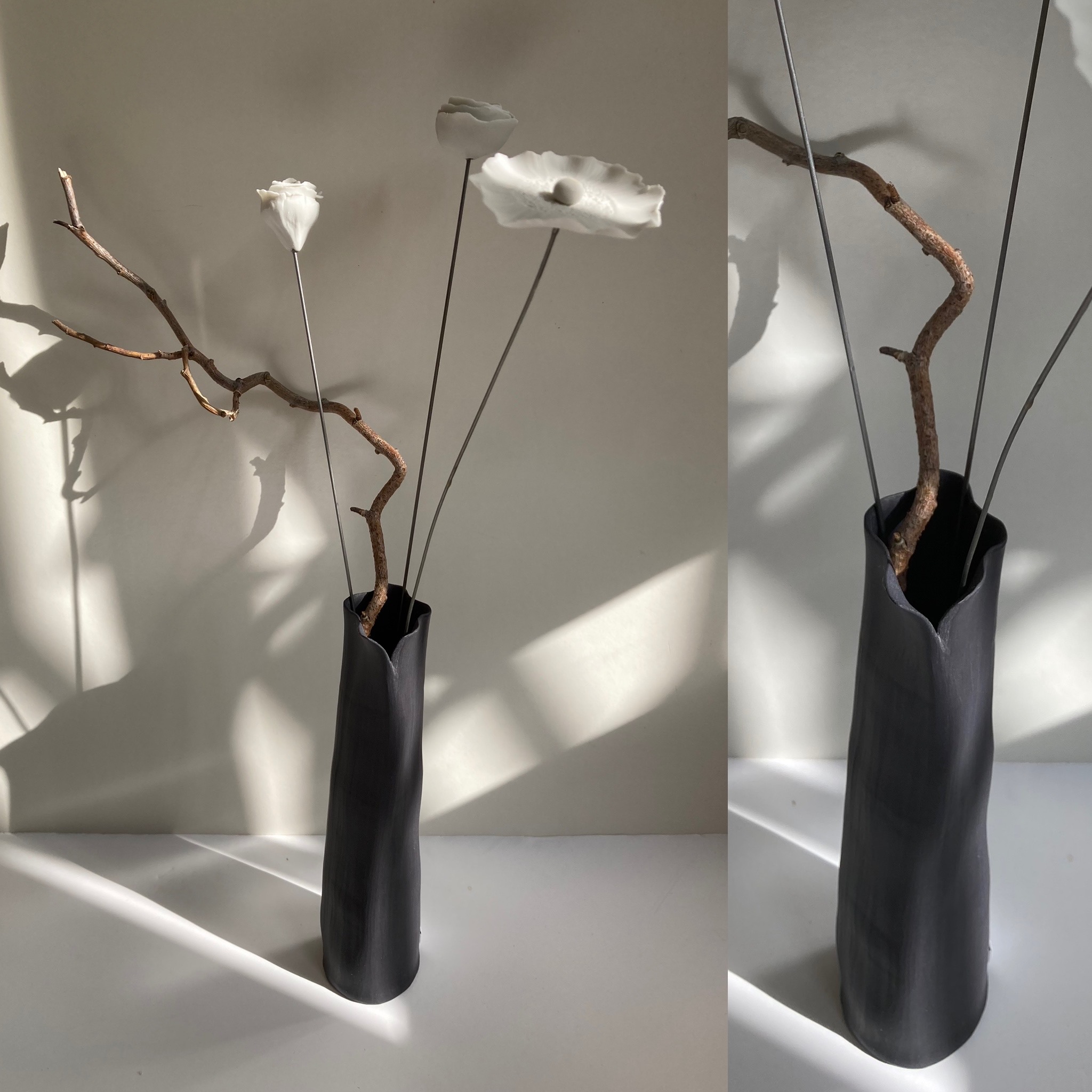 Certains de mes vases en porcelaine sont gravés à la pointe, d’autres sont structurés, polis, décorés de fleurs en porcelaine appliquées avant cuisson ou faits de porcelaine blanche et noire mêlées. Grands, petits, hauts, fins, ronds, mes vases en porcelaine sont tous des créations différentes pour accueillir tout type de fleurs naturelles ou bien sûr mes fleurs en porcelaine. Vides, mes vases en porcelaine  décorent vos étagères en apportant une touche originale, délicate et unique.