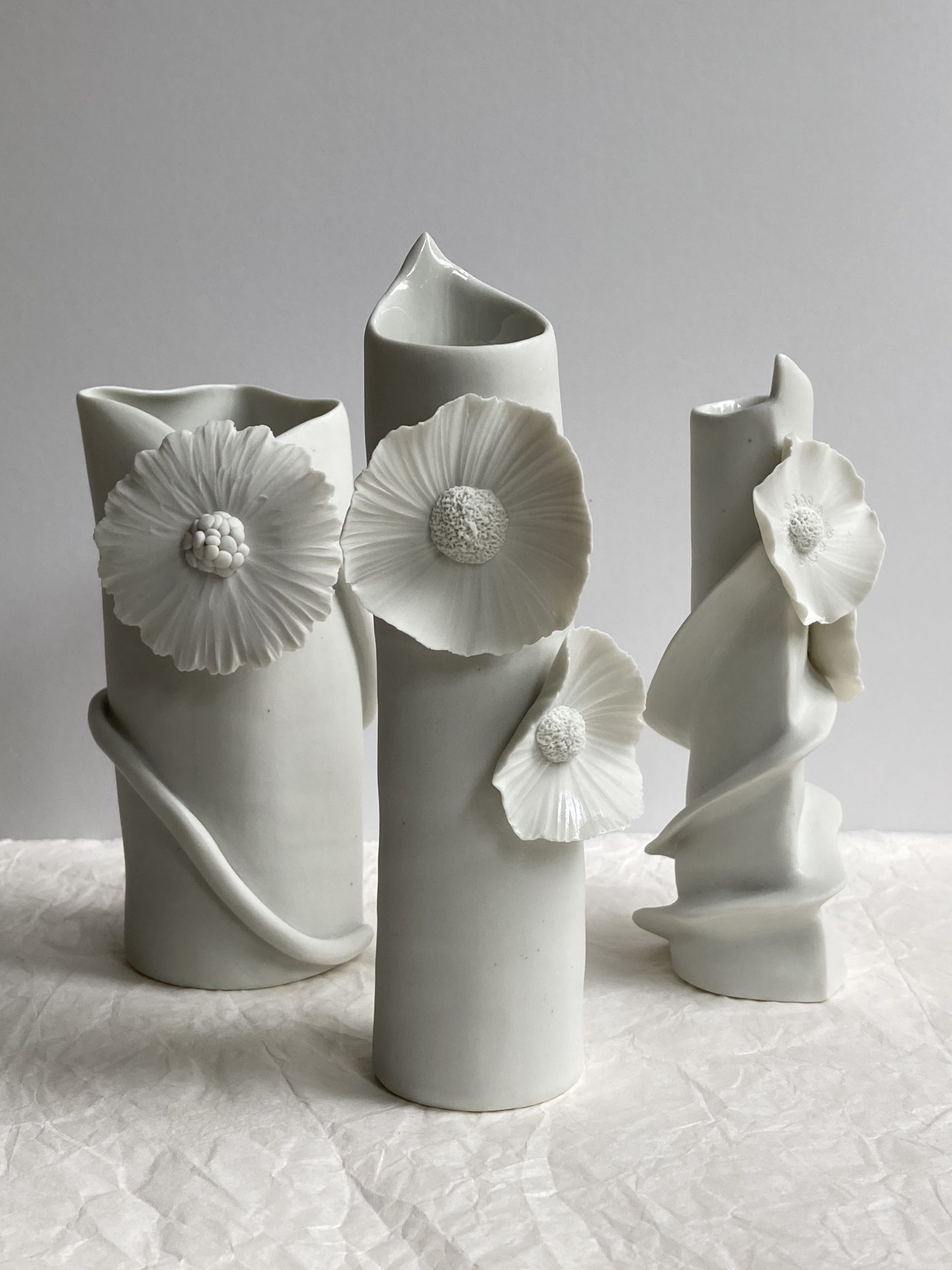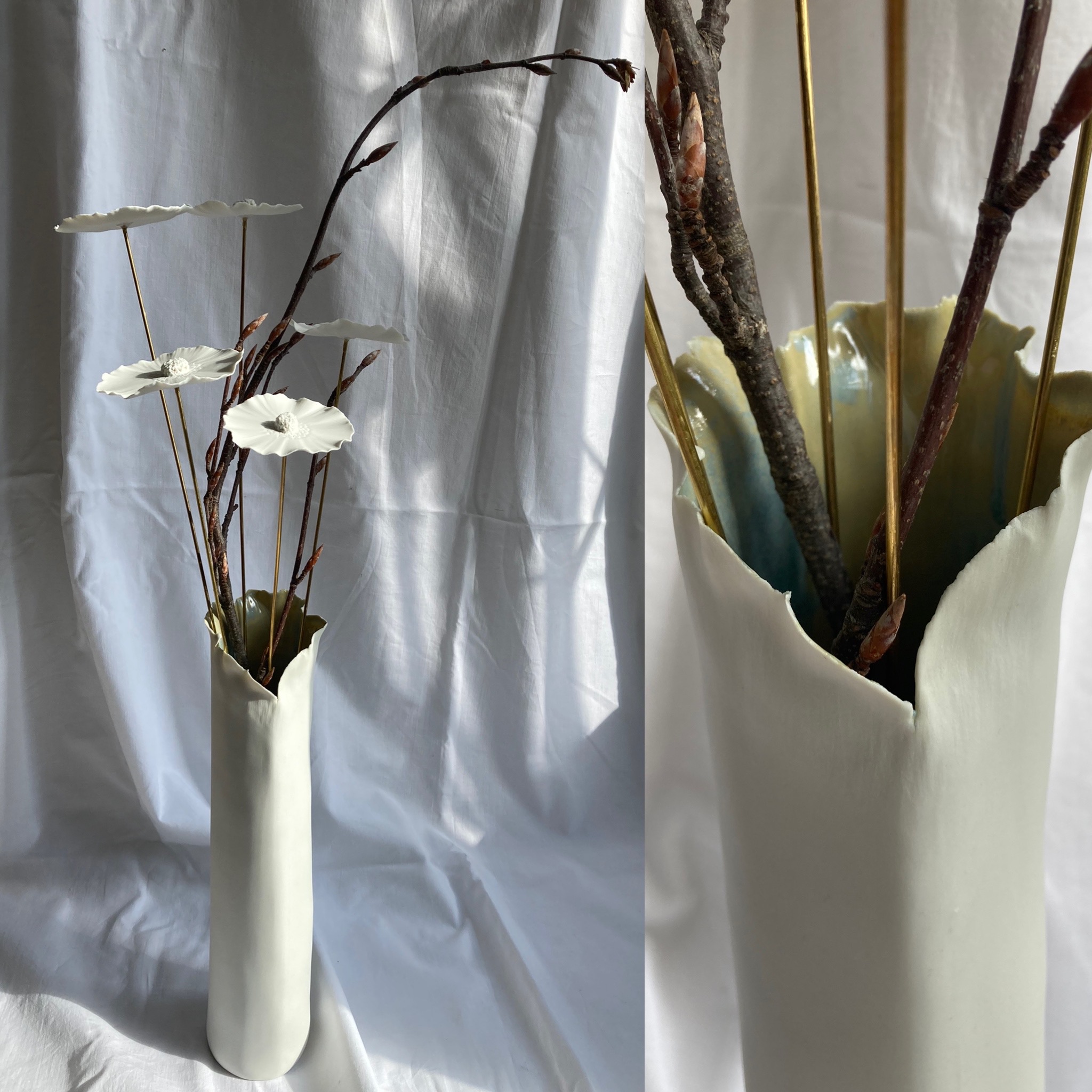 Mes vases en porcelaine sont des pièces uniques, créés à la plaque, ou  sont patiemment montés aux colombins.