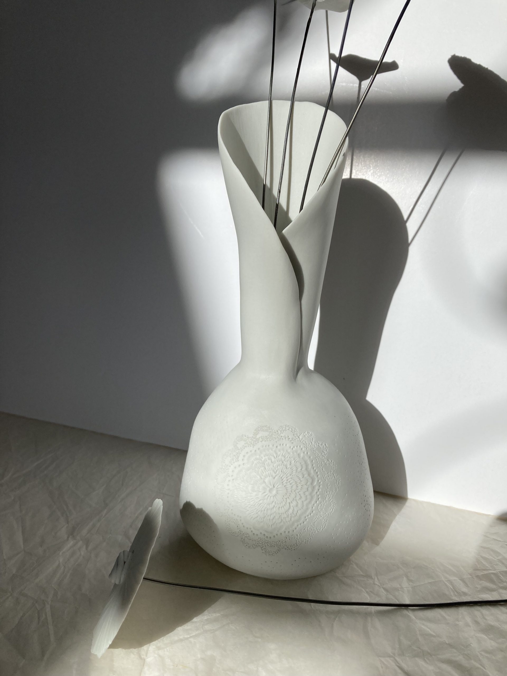 Mes vases en porcelaine sont des pièces uniques, créés à la plaque, ou sont patiemment montés aux colombins.